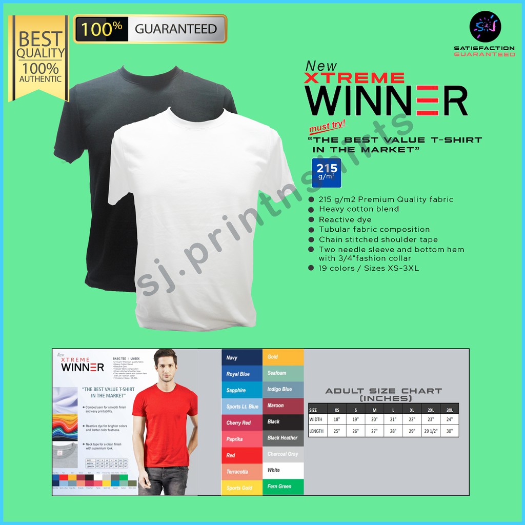Winner Xtreme Plain Shirt White Black Military Red Others Xs To 3xl Shopee Philippines